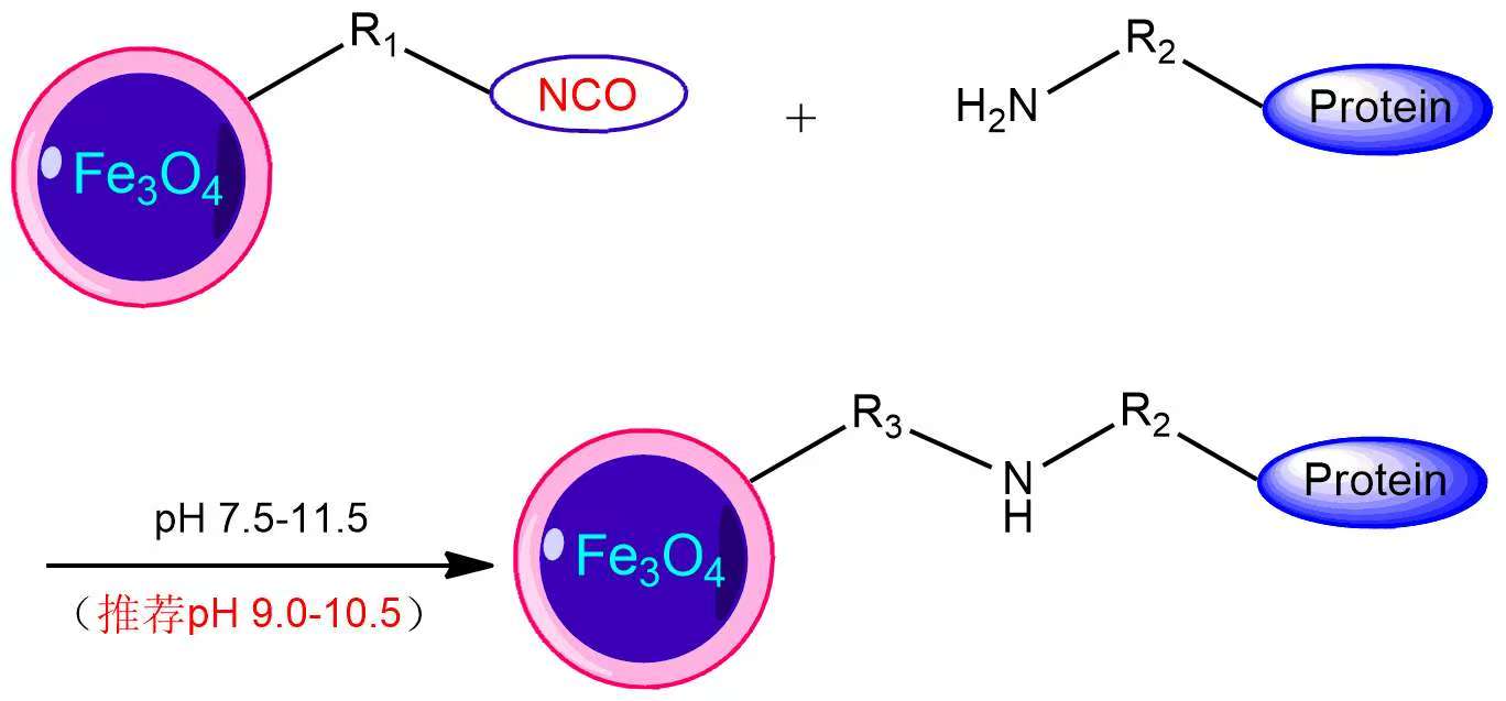 EnrichingBeads® NCO基琼脂糖偶联磁珠以交联琼脂糖为基质,拥有良好的刚性、磁响应性和单分散性,表面修饰有活性基团,能够在较宽的pH环境中(特别是 pH9-11的碱性工作环境中)与含伯胺基(氨基)或者巯基的生物配体通过共价偶联的方法实现稳定结合,如:蛋白质、抗体、寡聚核苷酸和药物分子等,具有操作简单、偶联条件温和、生物配体偶联快速高效、不易脱落的优点。