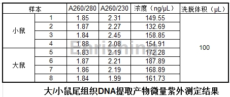 1、磁珠法鼠尾基因组DNA提取试剂盒提取效果:
